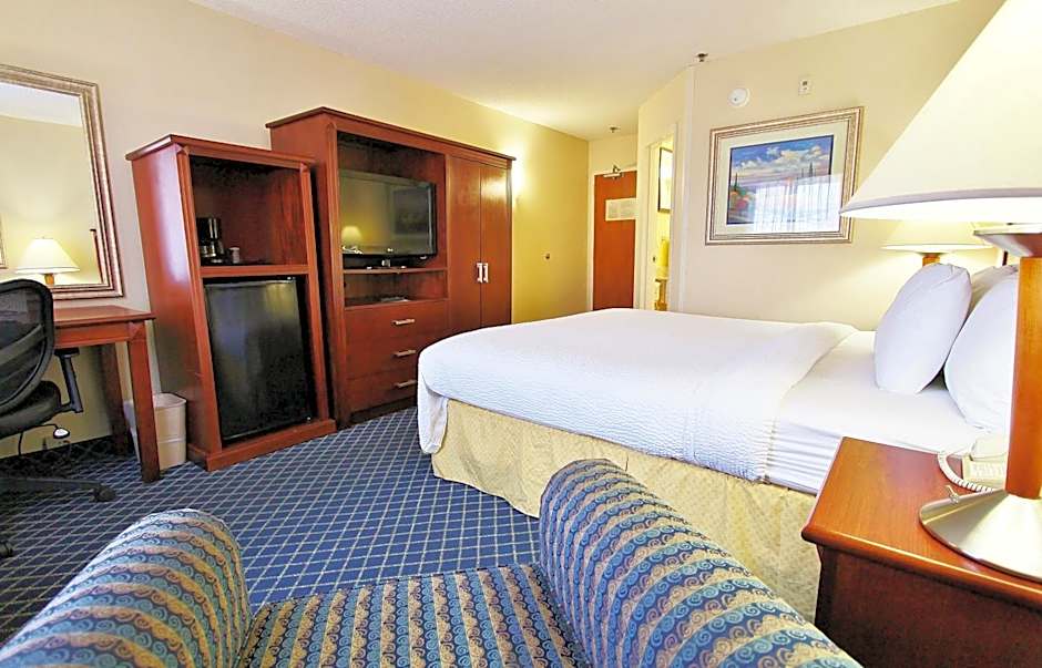 This king room features a microwave, fridge, tea/coffee maker, hair dryer, flat-screen TV, cable TV and air conditioning/heating.